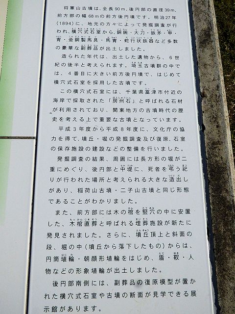 きれいに整備され、前方後円墳の形がはっきりわかるのですが、墳丘上には上れないみたいです。古墳のすぐ近くに説明板が設置してあります。