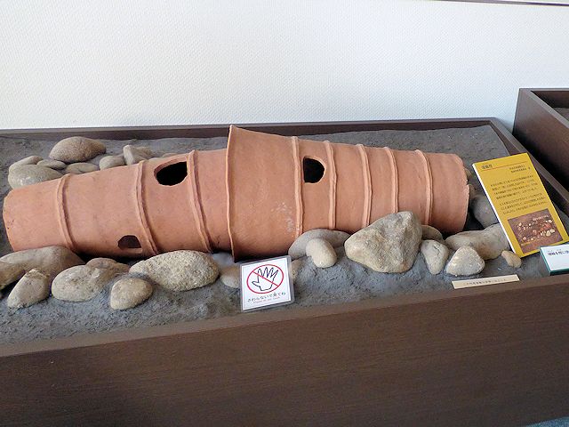 写真撮影もしたのですが、説明の文字が小さすぎて画像にすると読めませんでした。ただその説明パネルの後ろに、出土した埴輪の様子が復元されたものがあって、当時の状況が少しわかりました。