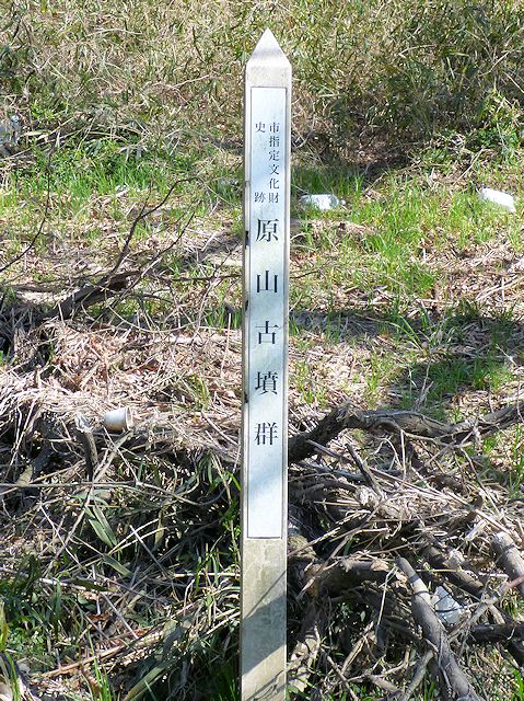 しかしこの標識近くには、古墳を思わせるような墳丘の姿はなし。どうやらこの標識の後ろ側一体がちょっと丘のようになっているようで、その中に古墳が点在しているような印象です。