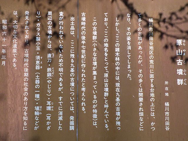 そのサイクリング道路を川沿いに東南方向に歩いて行ったところに、説明板らしきもがあるのを発見。近づいて見ると、古墳の説明が表示されていました。